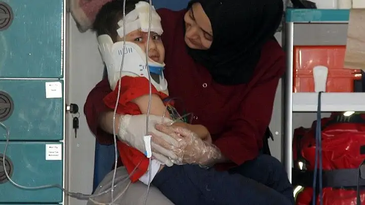 'Sağlık görevlisinden yaralı çocuğa anne şefkati'