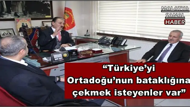 AK Parti Malatya Milletvekili Mustafa Şahin, Malatya Esnaf ve Sanatkarlar Odaları Birliği Başkanı Şevket Keskin'i ziyaretinde yaptığı konuşmasında, "Türkiye'yi Ortadoğu'nun bataklığına çekmek isteyenler var" dedi.