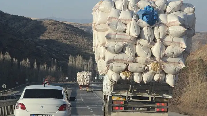 Sivas'ta aşırı yüklenmiş kamyonun kasasındaki saman yükünün kamyonun bulunduğu şeritten taşması ilginç görüntüler oluşturdu. Sivas'ta çekilen görüntüde Sivas-Kayseri Karayolu'ndan Sivas istikametine seyretmekte olan saman yüklü iki kamyon görülüyor. Kamyonların kasalarındaki samanın hacmi bir hayli geniş olunca kamyonlar yükleri ile birlikte kendilerine ait olan şeridi fazlası ile doldurdu. Durum böyle olunca kamyonları sollamak isteyen araçlar güçlük çekti. Sürücüler kamyonlara yaklaşmak istemezken, kamyonların sinyalizasyon lambalarını ve garabi direklerine santimetreler kala geçmesi ilginç görüntüler oluşturdu.