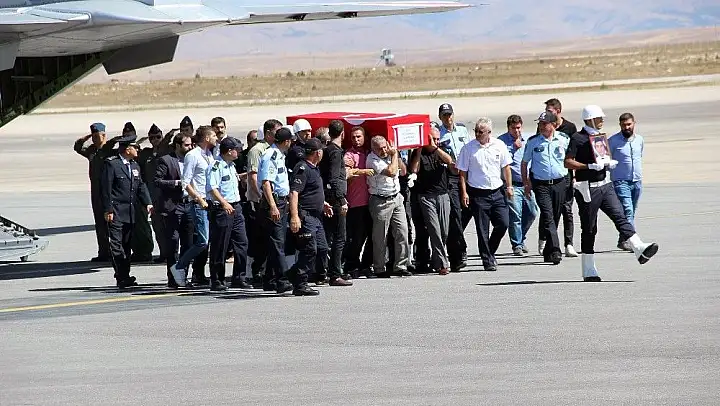 Van'ın Özalp ilçesinde şarampole devrilen zırhlı polis aracında şehit olan polis memuru 39 yaşındaki Adnan Saka'nın Türk bayrağına sarılı naaşı memleketi Sivas'a getirildi.