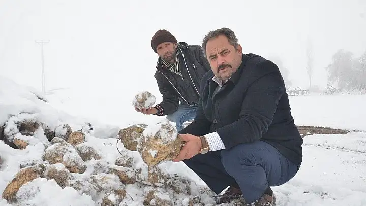 Elbistan Ovası'nda çiftçilerin yüzlerce ton şeker pancarı kar altında kaldı.