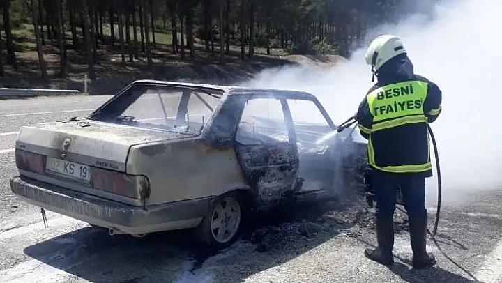 Adıyaman´ın Besni ilçesinde seyir halinde olan bir otomobil yanarak hurdaya yığınına döndü.