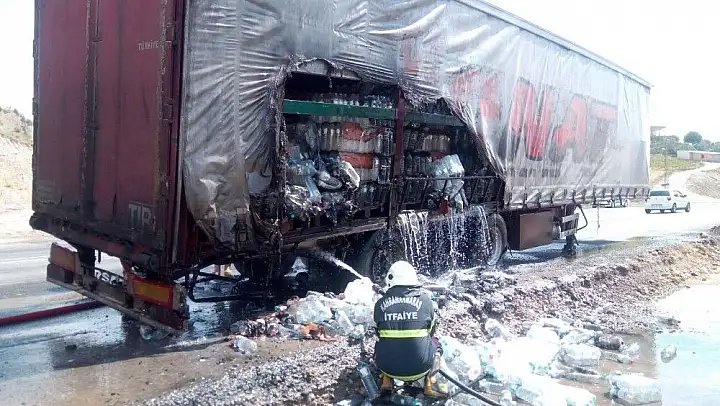 Edinilen bilgiye göre olay, Kahramanmaraş-Kayseri karayolunda meydana geldi. Recep Y.'nin kullandığı 38 JJ 770 plakalı tır, Kahramanmaraş kent merkezi istikametinde seyir halindeyken bir anda arka tekerleri alev aldı. Kendi imkanlarıyla alevleri söndüremeyen tır sürücüsü Recep Y. ve çevredekiler itfaiyeyi aradı. Kısa sürede olay yerine gelen itfaiye ekipleri, alevleri söndürerek tırın tamamen yanmasını önledi. Tırda maddi hasar meydana geldi. Yangının tekerin balatalarının ısınmasından kaynaklandığı öğrenildi.