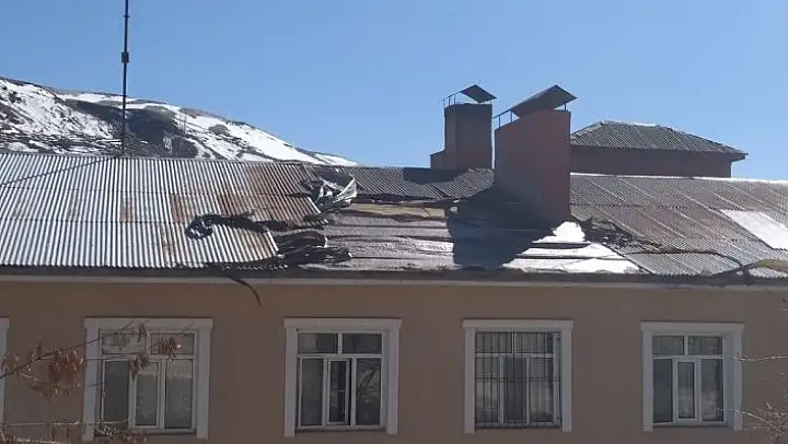 Adıyaman´ın Çelikhan ilçesinde etkili olan şiddetli rüzgar nedeniyle Çelikhan Devlet Hastanesi ve evlerin çatıları uçtu.