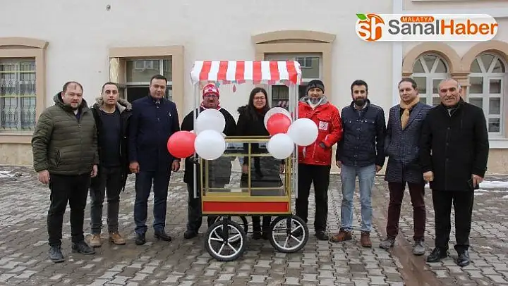 Öğretim Görevlisi Özlem Sayın'ın öncülüğünde öğretim üyeleri, esnaf, memur ve öğretmenlerden oluşan bir grup, geçimini simitçilikle sağlayan Ahmet Yaşin'e çok istediği simit arabasını temin ederek hediye etti.