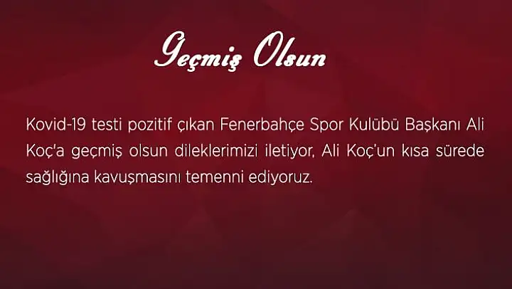 'Kovid-19 testi pozitif çıkan Fenerbahçe Spor Kulübü Başkanı Ali Koç´a geçmiş olsun dileklerimizi iletiyor, Ali Koç´un kısa sürede sağlığına kavuşmasını temenni ediyoruz.'