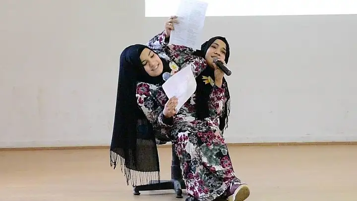 Kahramanmaraş'ta Mevlit Kandili kapsamında düzenlenen programında, 18 yaşına giren siyam ikizi Sema ve Ayşe'nin okuduğu şiir dinleyenleri duygulandırdı.