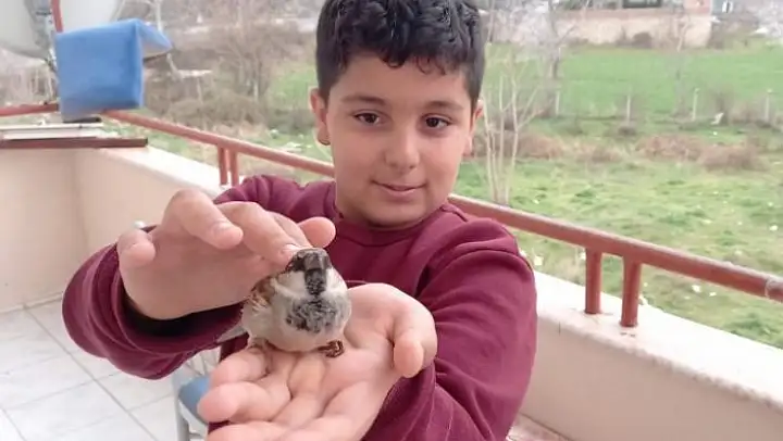 12 yaşındaki Ömer Yalman, Serçe kuşunun soğuktan etkilendiğini görünce yardım ettiğini ifade ederek, 'Yeşilyurt ilçesine bağlı Dilek Mahallesinde yaşıyorum. Havaların soğuk olmasından dolayı, Serce bizim evin balkonuna geldi. Ben de serçeye yem ve su verdim. Üşümüştü. Ellerimle ısıttım. Daha sonra babam ile birlikte balkondan tekrar doğaya bıraktım' dedi.