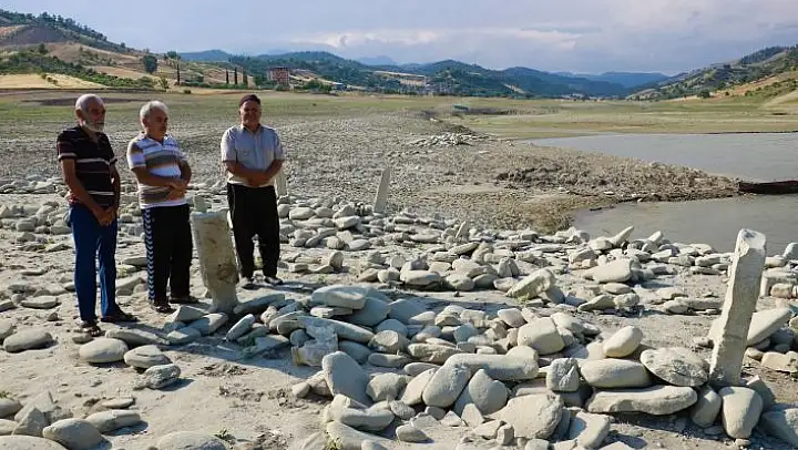 Bölgenin çevredeki üç köyün mezarlık alanının olduğunu söyleyen Bayram Koska, 'Burası önceden İsmailli, Orhangazi ve Sarı Ahmetli köylerinin mezarlık alanıydı. Burada büyüklerimiz yatıyor. Bugün de buraya geldik suların çekilmesi sonrası mezarları ziyaret ederek dualarımızı ilettik' dedi.