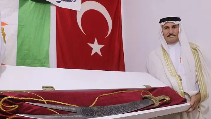Abraz Aşireti reisi Muhammed Ahmet El Mişel, kılıcın Arap kültüründe önemli bir yere sahip olduğunu belirterek, teşekkürlerini dile getirmek için ata yadigarı kılıcı Cumhurbaşkanı Erdoğan´a hediye etmek istediğini söyledi. Mişel, 'Bu kılıç bizim dedelerimizin tarihidir. Bizim Araplarda çatışmak için en asil alet olarak kılıcı görürüz. Hediyemiz sayın Cumhurbaşkanımız için çok küçük biliyoruz ama bizim elimizden geleni yapıyoruz. Kılıcımızı sayın Cumhurbaşkanımıza mazlumların yanında olduğunu için hediye etmek istiyoruz. Sayın Cumhurbaşkanımız mutlaka haberimizi görecek biz biliyoruz. Bizi ne zaman çağırırsa biz o zaman gideriz. Çok eskiden beri bu kılıç bizde, atalarımızdan kalma. Yazısı yoktu, biz yazı yazdık. Sayın Cumhurbaşkanımızın ismini üstüne yazdık. Çok eski bir kılıç. Biz satın olarak almadık babamdan kaldı' şeklinde konuştu.