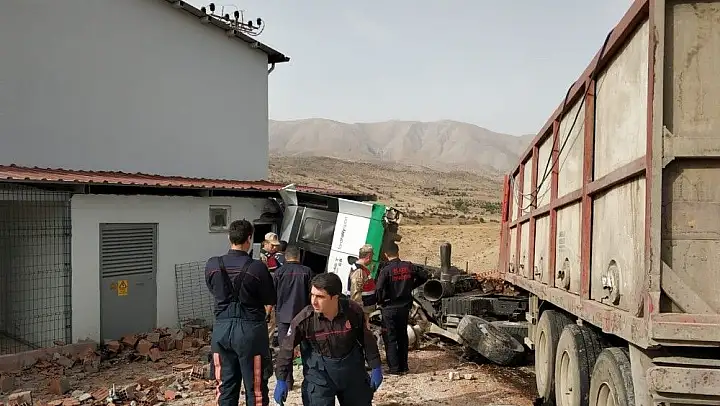 Elazığ'da yoldan çıkan tırın bir çiftliğin duvarına çarptığı kazada sürücü yaşamını yitirdi.