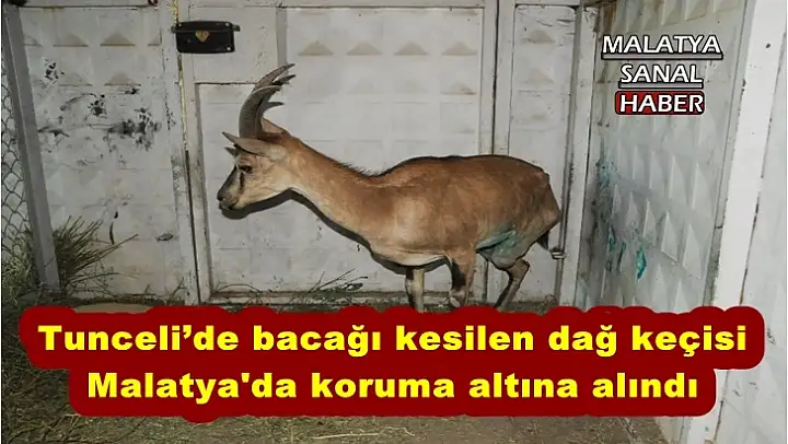 Munzur Vadisi Milli Parkı'nda yaklaşık 2 ay önce vatandaşlar tarafından bacağından yaralanmış şekilde dağ keçisi bulundu. Dağ keçisi, tedavi edilmek üzere Doğa Koruma ve Milli Parklar Şube Müdürlüğüne getirildi. Burada yapılan ilk müdahalenin ardından Elazığ Fırat Üniversitesi Veterinerlik Fakültesi Hayvan Hastanesine götürülen keçi, sor arka bacağı aktivitesini kaybetmesi ve hayatta kalması için kesilmek zorunda kaldı. Tedavisinin ardından yeniden Tunceli'ye götürülen dağ keçisine bir süre daha bakım ve tedavisi yapıldı. Tamamlanan tedavinin ardından keçi Malatya'nın Hekimhan ilçesinde bulunan Memeli Yaban Hayvanı Üretim İstasyonu'na gönderilerek koruma altına alındı.