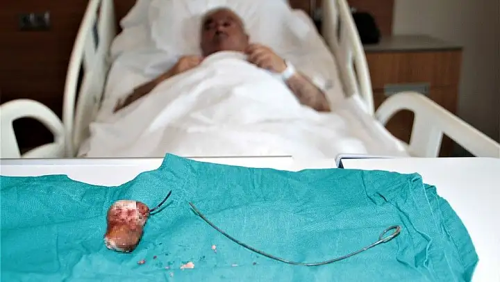Elazığ'da bir hastadan, Ankara'da geçirdiği bir operasyon sonrası böbrek kanalında unutulan ve 7 yıl sonra fark edilen tamamen taşlaşmış 28 santimetrelik stent başarılı bir operasyonla çıkarıldı.