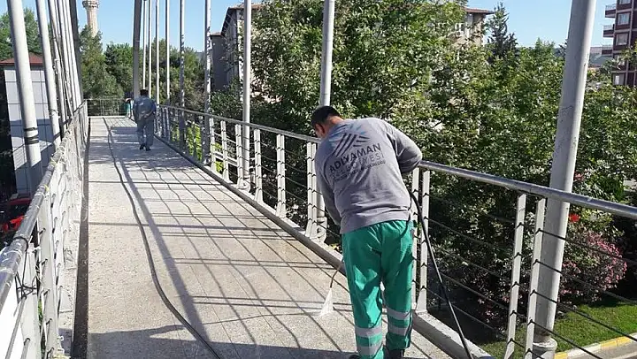 Adıyaman Belediyesi Temizlik İşleri Müdürlüğü ekipleri, şehir merkezinde bulunan üst geçitlerde temizlik çalışması yaptı.