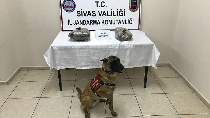 Sivas'ta jandarma narkotik köpeği Geçim, otobüs ile Van'dan Bursa'ya götürülmek istenen 3.5 kilo kubar esrar maddesini bulmayı başardı.