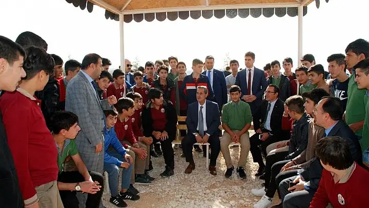 Okula gelişinde öğrencilerin yoğun ilgisiyle karşılaşan Vali Nurullah Naci Kalkancı, okulun bahçesinde öğrencilerden dersleri hakkında sohbet ederek, istek ve önerilerini dinledi.