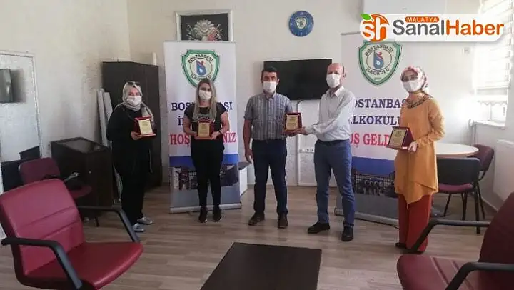Malatya merkez İlçe Yeşilyurt Bostanbaşı İlkokulunda görev yapan yönetici öğretmen ve yardımcı personele Covid 19 sürecinde göstermiş oldukları özverili çalışmalardan dolayı veliler adına okul aile birliği tarafından teşekkür plaketi takdim edildi.