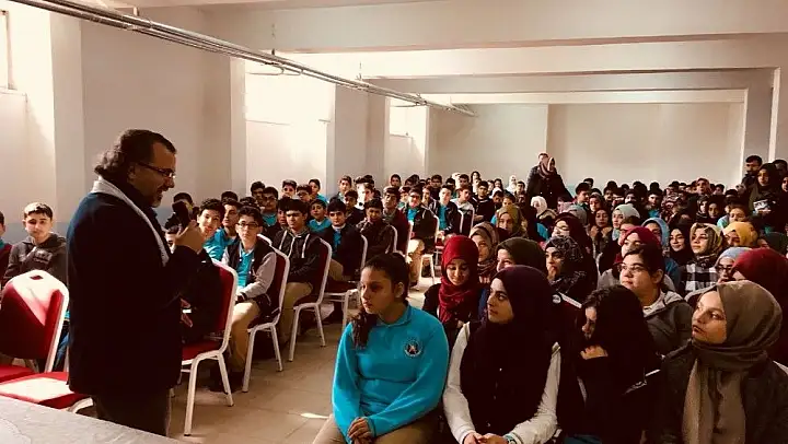 Okul Müdürü Nevzat Yiğit ziyarete ilişkin yaptığı açıklamada, 'Kadim geleneğimizin önemini hatırlatmak, Anadolu irfanını 21.yy insanının gündemine yeniden taşımak, medeniyetimizin yapıtaşları örf, adet ve geleneklerimizi yeni bir bakış açısıyla insanların idrakine sunmak için şehir şehir dolaşan kişisel eğitim ve gelişim uzmanı Sıdkı Aslanhan, okulumuzu ziyaret ettikleri için teşekkür ediyoruz. Öğrencilerle bir araya gelen yazarımız varlık sebeplerini idrak etmeleri, farkındalık ve bilinç düzeylerini arttırmaları gerçek huzurun ve mutluluğun kapılarını aralamaları için öğrencilere hatırlatmalarda bulundu' dedi.
