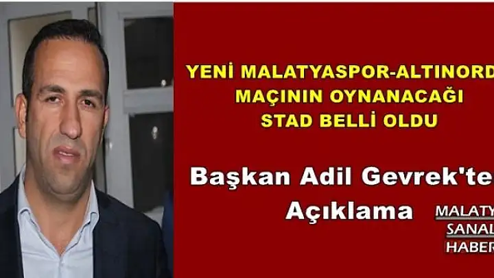 Evkur Yeni Malatyaspor Başkanı Adil Gevrek, İnönü Stadı'nın futbola elverişli olmadığı için Altınordu maçının da Vodafone Arena'da oynanacağını açıkladı.