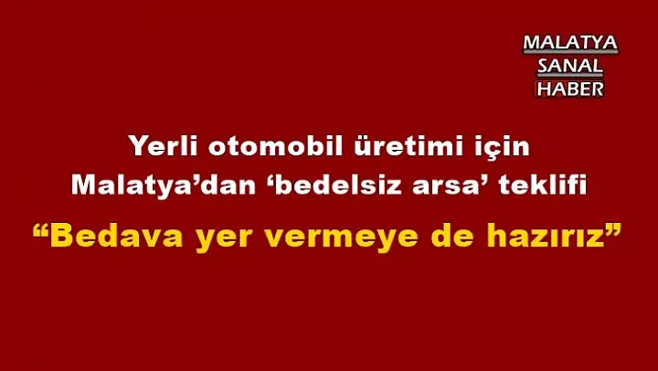 Yerli otomobil üretimi için Malatya´dan `bedelsiz arsa´ teklifi