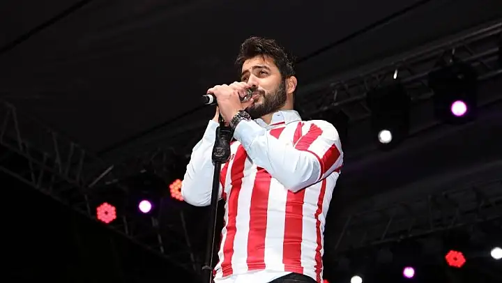 Konserinde Kahramanmaraşspor Kulübü'nün formasını giyen Yusuf Güney, fuar merkezini dolduran hayranlarıyla birlikte şarkılarını seslendirdi.