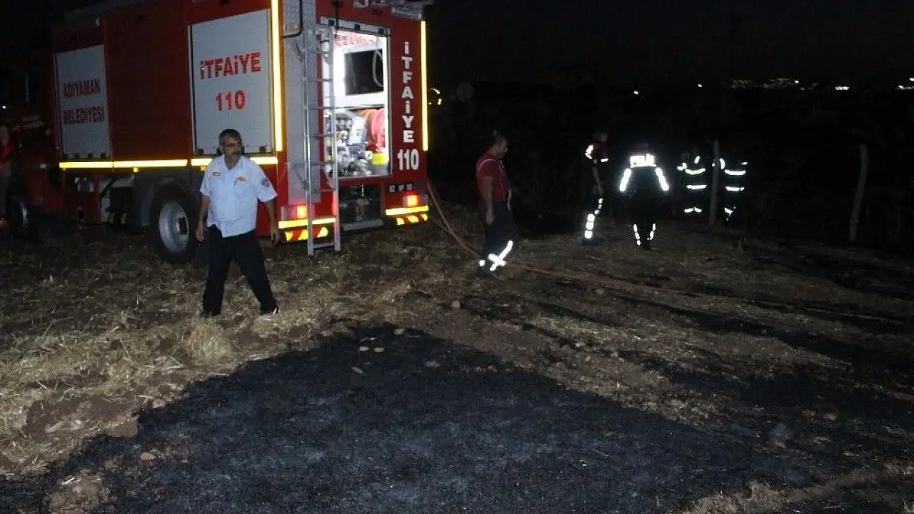 Edinilen bilgiye göre, Karapınar Mahallesi Adıyaman Belediyesinde Makine İkmal Müdürlüğü yakınlarında bulunan bir arazide bilinmeyen nedenlerden dolayı otluk alanda yangın çıktı. Çıkan yangın kısa sürede büyüyerek Adıyaman Belediyesinde Makine İkmal Müdürlüğü bahçesine sıçradı. Alevlerin bahçeye sıçraması sonrası ihbar üzerine kısa sürede olay yerine gelen itfaiye ekipleri alevlere müdahale ederken polis ekipleri ise çevrede güvenlik önlemi aldı. İtfaiye ekiplerinin yaptığı çalışmalar neticesinde yangın söndürüldü.