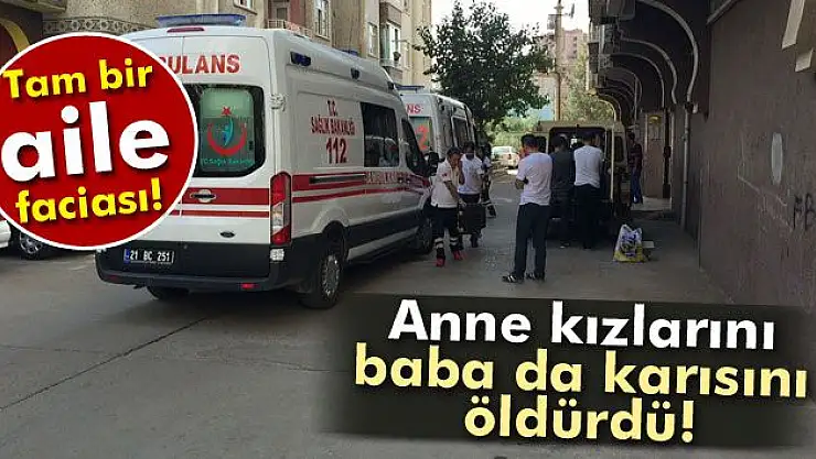 Diyarbakır’da bir anne ile iki kızı arasında çıkan tartışma nedeniyle cinnet getiren anne, pompalı tüfekle kızlarını öldürdü. Kızlarının öldüğünü gören baba ise eşinin boğazını kesti. Olay, merkez Kayapınar ilçesi Peyas Mahallesi 235’inci Sokak'ta bulunan Öztekin sitesinde meydana geldi. İddialara göre, sitedeki bir apartmanın 4’üncü katında oturan T. ailesinin evinden tartışma sesleri gelmeye başladı. Burada Anne A. ile kızları H. (18) ve H.T. (20) arasında, harçlık yüzünden çıktığı ileri sürülen tartışma bir süre sonra boğuşmaya dönüştü. Bunun üzerine cinnet getiren anne A., kendi adına ruhsatlı pompalı tüfeği ile kızlarına ateş açtı. Olayda, her iki kız da hayatını kaybetti. Anne A.T. daha sonra ise odaya gelerek, kızlarının cansız bedenini yerde gören baba S.T.’ye ateş açmak istedi. Ancak silah tutukluluk yaptı. Bunun üzerine mutfaktan bir bıçak alan baba S.T., içeriye girerek, anne A.T.’nin boğazını kesti. Anne A.T. de olay yerinde hayatını kaybetti. Olayın bildirilmesi üzerine gelen polis, baba S.T.’yi gözaltına alarak, olay yerinde incelemelerde bulundu. S.T., sağlık kontrolünden geçirilmek üzere Diyarbakır Eğitim ve Araştırma Hastanesi’ne götürülürken, olay yerine savcının gelip, incelemelerde bulunması bekleniyor. Öte yandan, durumu öğrenerek olay yerine gelen ailenin yakınları, sinir krizleri geçirdi.