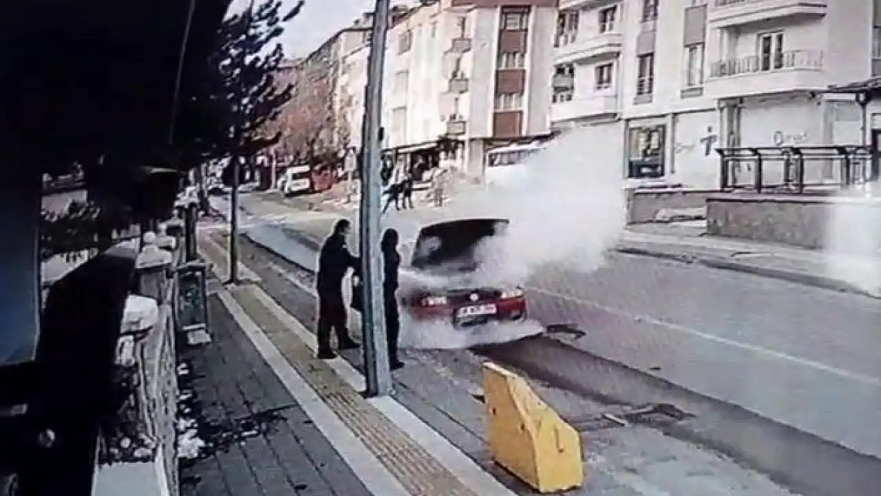 Edinilen bilgilere göre yangın, geçtiğimiz gün Dörteylül Mahallesi Necip Fazıl Kısakürek Caddesi üzerinde meydana geldi. Cadde üzerinde ilerleyen bir otomobilin motor kısmında LPG kitinden dolayı yangın çıktı. Motor kısmı alev alev yanan otomobilin sürücüsü, panik içerisinde araçtan indi ve yangını söndürmek için çabalamaya başladı. Aracı yanan çaresiz sürücünün imdadına Sivas Emniyet Müdürlüğü Ekipler Amirliğinde görevli polis memuru yetişti. Polis memuru, yangın söndürme tüpüyle alevlere müdahale etti. Aracı yanan çaresiz sürücünün yaşadıkları ve polis memurunun yanan araca müdahalesi güvenlik kamerasına yansıdı.
