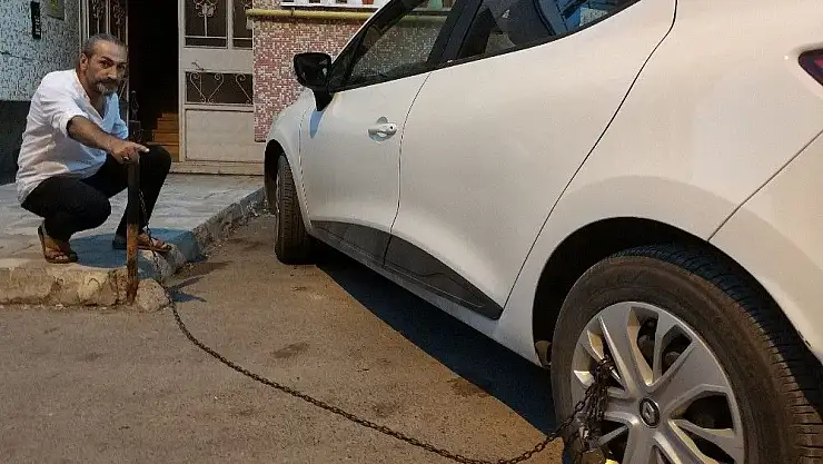 Sivas’ta aracını kendisine ait olmayan bina önüne park eden vatandaş geri geldiğinde otomobilini tekerinden zincirlenmiş halde buldu.