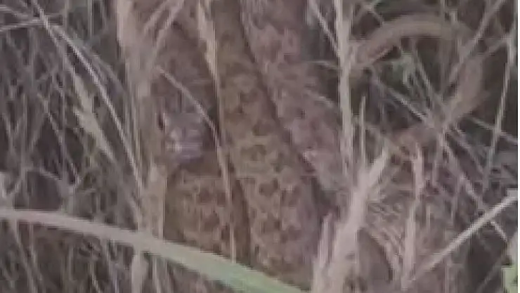 Elazığda bir kişi boş arazide kenetlenen yaklaşık 2 metrelik yılanı görünce, 'Ahtapot Necdet' diyerek o anları kayıt altına aldı. Adamın konuşmasını d
