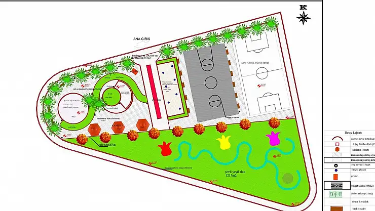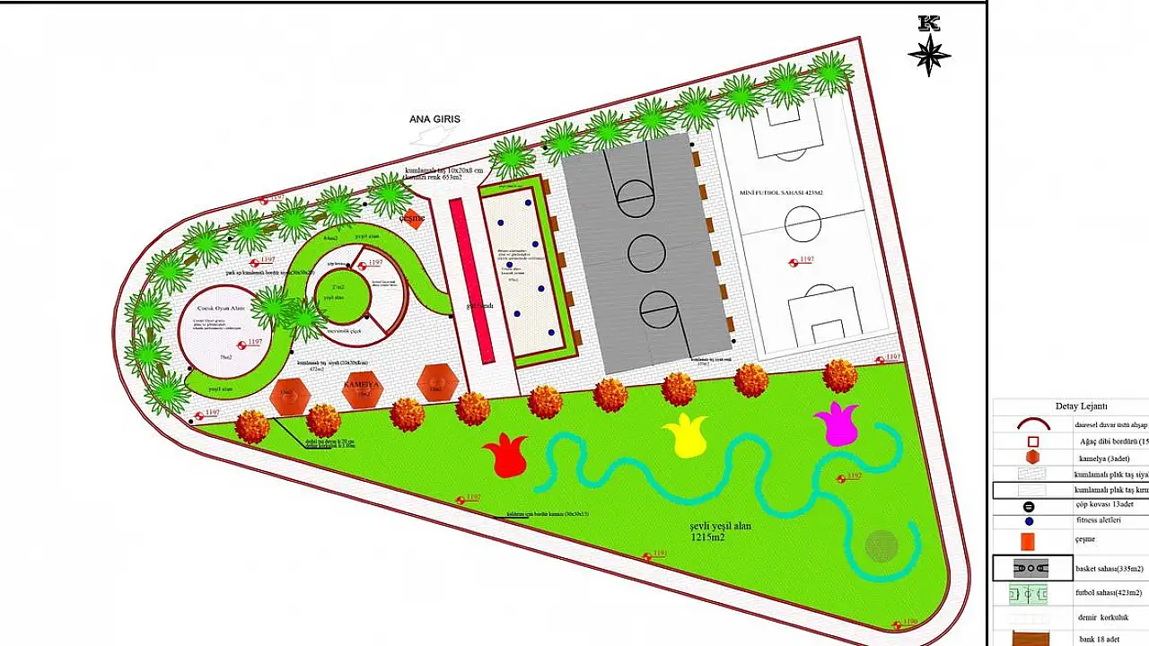 Çocuk oyun alanları ile 3 adet kamelyanın da düşünüldüğü park içerisinde ayrıca; 1 adet çeşme, yürüyüş yolları, aydınlatma elemanları, oturma grupları ile 1330 m2’lik yeşil alan bulunuyor.