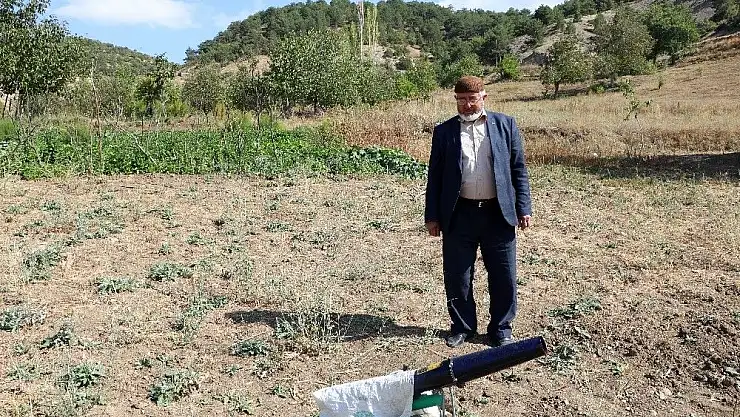 Ekinözü ilçesine bağlı 1400 rakımlı Yeniköy Mahallesi’nde yaşayan Abdurrahman Koyun, arı kovanlarını korumak için mutfak tüpüyle çalışan ve 5 dakikada bir ateşleyen kuş kovucu kullanıyor. Özellikle arıları yiyen kuşlar ve bahçeye giren domuzlardan bıkan çiftçi, çareyi ‘kuş savar’ adı verilen tüp gazla çalışan aleti kullanmakta buldu.