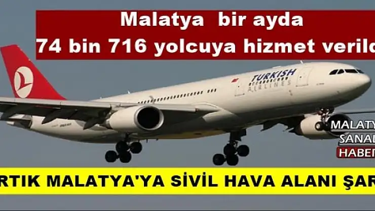 Malatya Havalimanı'nda, bir ay içerisinde 74 bin 716 yolcuya hizmet verildi.