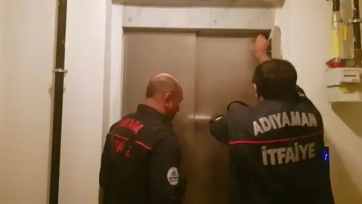 Adıyaman merkez Bahçelievler Mahallesi 921 sokakta bulunan bir binanın asansörüne binen Yakup M. isimli şahıs asansörle yukarı çıkarken asansör durdu. Asansörün hareket etmemesi üzerine durumu itfaiye ekiplerine bildirdi. Binaya gelen itfaiye ekipleri asansörün kapısını açarak mahsur kalan şahsı çıkardı.