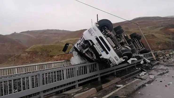 Kaza, Elazığ-Bingöl karayolu Gülüşkür Köprüsü´nde meydana geldi. Edinilen bilgiye göre, sürücüsünün direksiyon hakimiyetini kaybettiği 72 AJ 670 plakalı asfalt yüklü tır bariyerlere çarparak devrildi. Kazada bir kişi yaralandı. Çevredekilerin haber vermesi üzerine olay yerine sağlık ve jandarma ekipleri sevk edildi. Yaralı, ambulansla hastaneye kaldırılarak tedavi altına alındı. Jandarma ekipleri olay yerinde inceleme yaptı.