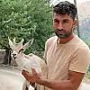 Adıyaman´da ayakları tutmadığı için yürüyemeyen yavru yaban keçisini doğada ölüme terk etmeyen Mahmut Baykuş, yavru yaban keçisini evinde besliyor.