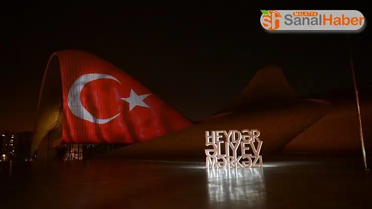 Azerbaycan’ın en önemli sembollerinden biri haline gelen Haydar Aliyev Merkezi’nin duvarlarına Türk bayrağı yansıtıldı.