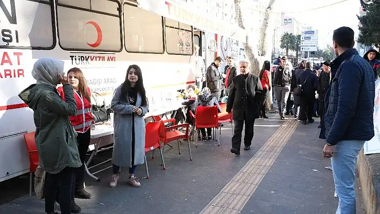 Kahramanmaraş’ta bir grup genç, Kızılay’ın kan bağış kampanyasına katılımı artırmak için kan bağış otobüsü yanında bağırarak vatandaşlardan destek istedi.