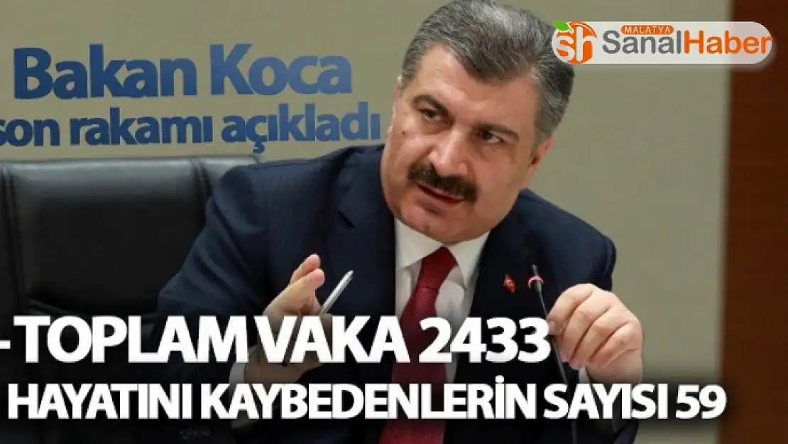 Sağlık Bakanı Fahrettin Koca, yaptığı açıklamada, “Son 24 saatte 5 bin 35 test sonuçlandı. 561 tanı kondu. 15 hastamız hayata veda etti. Bugüne dek kaybettiğimiz hasta sayısı 59. Toplam hasta sayımız 2 bin 433. Sayılar, kayıp acısını, endişeyi ifade edemez. Sıfır riskle yaşamaya çalışalım. Bizi hayata tedbir bağlar” dedi.