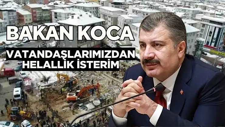 Sağlık Bakanı Fahrettin Koca, 6 Şubat’ta meydana gelen Kahramanmaraş merkezli depremlere ilişkin, "Elbette, her ihtiyaca yetişemediğim, her sorumluluğa yetemediğim zamanlar da oldu. Bunlar için sizlerin huzurunda vatandaşlarımızdan helallik isterim" dedi.