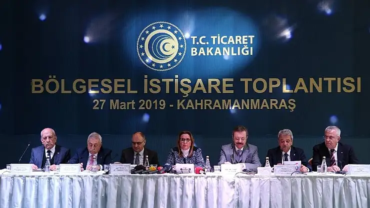 Kahramanmaraş Ticaret ve Sanayi Odası’nda (KMTSO) Bölgesel İstişare Toplantısı’nda konuşan Ticaret Bakanı Ruhsar Pekcan, gümrük kapılarında yapılan projeleri değerlendirdi. Toplantı, KMTSO Başkanı Serdar Zabun, Türkiye Odalar ve Borsalar Birliği (TOBB) Başkanı M. Rifat Hisarcıklıoğlu ve Türkiye Esnaf ve Sanatkarları Konfederasyonu Başkanı Bendevi Palandöken ve Kahramanmaraş Valisi Vahdettin Özkan’ın selamla konuşmasıyla başladı.