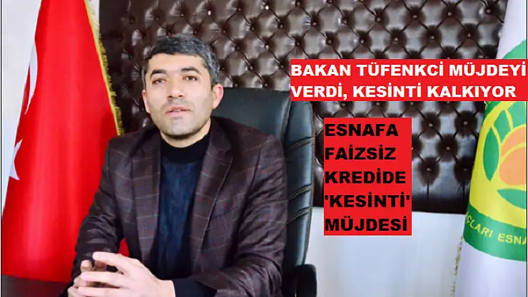 Hükümetin seçim öncesi beyanında bulunan esnafa 30 bin TL faizsiz kredi uygulamasında yapılan 3 bin 500 TL’lik kesintiler sona eriyor. Gümrük ve Ticaret Bakanı Bülent Tüfenkci, Malatya Minibüsçüler Esnaf Odası Başkanı Mesut İnce’yi arayarak kesintinin sona ereceği müjdesini verdi.