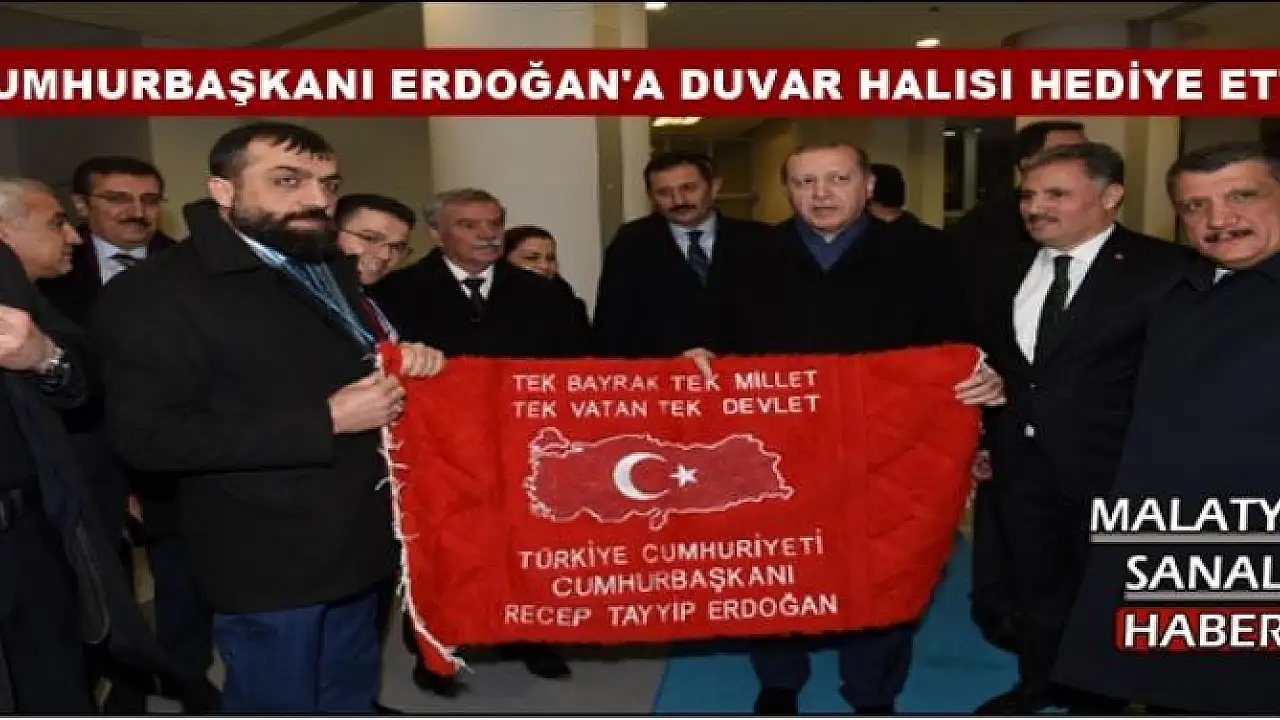 Malatya Tarım ve Hayvancılık Platformu (MATHAP) Yönetim Kurulu Başkanı ve aynı zamanda Malatya İli Damızlık Koyun Keçi Yetiştiricileri Birliği Başkanı İhsan Akın, Toplu Açılış törenine katılmak üzere Malatya’ya gelen Cumhurbaşkanı Erdoğan’a miting sonrası Türkiye haritalı duvar halısı hediye etti.