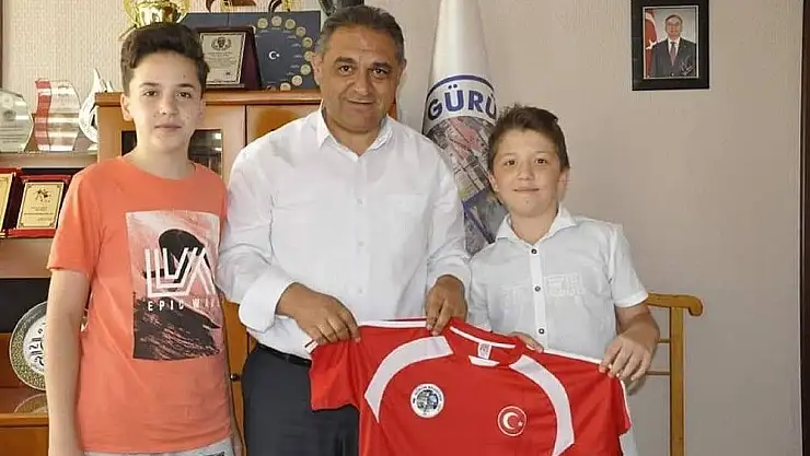 Gürün Belediye Başkanı Nami Çiftçi öğrencilere forma hediye etti.
