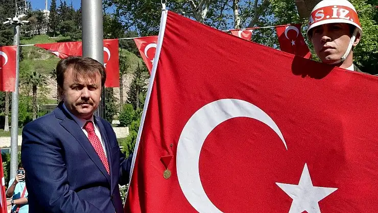 Ardından Kahramanmaraş Büyükşehir Belediye Başkanı Fatih Mehmet Erkoç, Kırmızı Şeritli İstiklal Madalyası’nı Türk Bayrağı’na taktı.