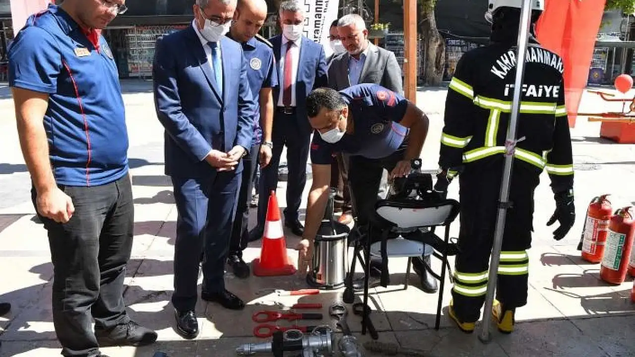 Kahramanmaraş Büyükşehir Belediye Başkanı Hayrettin Güngör, İtfaiye Haftası dolayısıyla Demokrasi Meydanı´nda açılan tanıtım stantlarını ziyaret etti.