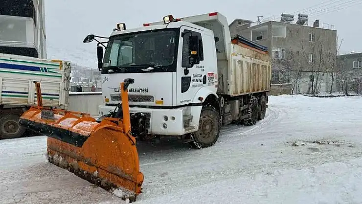 Kahramanmaraşta sabah saatlerinden itibaren etkili olan kar yağışı sonrası harekete geçen Elbistan Belediyesi ekipleri, yolları ulaşıma açık tutmak için seferber oldu.