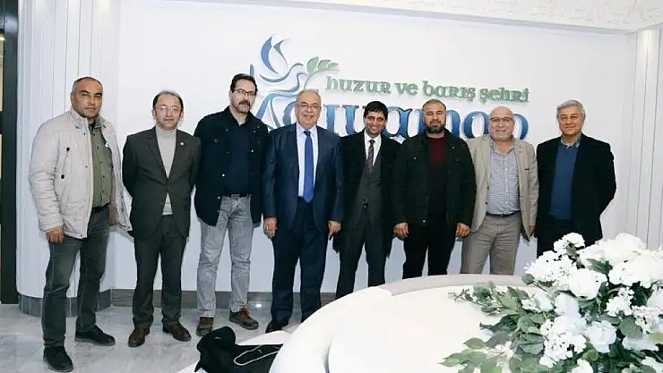 Adıyaman Belediye Başkanı Hüsrev Kutlu, Adıyaman Faal Gazeteciler Cemiyeti (AGAD) Başkanı İbrahim Aslan ile birlikte, AGAD tarafından düzenlenen 10 Ocak Çalışan Gazeteciler Günü etkinliğine katılmak üzere Adıyaman’a gelen Kırşehir Gazeteciler Cemiyeti Başkanı Sait Yanık, Çorum Hitit Gazeteciler ve Yayıncılar Derneği Başkanı Birkan Demirci ve Başkanvekili Hacı Odabaş, Nevşehir Gazeteciler Cemiyeti Başkan Yardımcısı Melih İlbağı, Niğde Gazeteciler Cemiyeti Başkanı Necmi Pişkin, Tarsus Gazeteciler Cemiyeti Başkanı Okan Çalışkan ve Ceyhan Gazeteciler Cemiyeti Başkanı Şahin Özer’i makamında ağırladı.