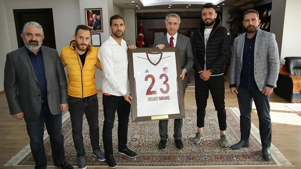 Ziyaret anısına Elazığspor takım kaptanı Onur Güney, üzerinde isminin yazılı olduğu 23 numaralı Elazığspor formasını Belediye Başkanı Mücahit Yanılmaz’a hediye etti.