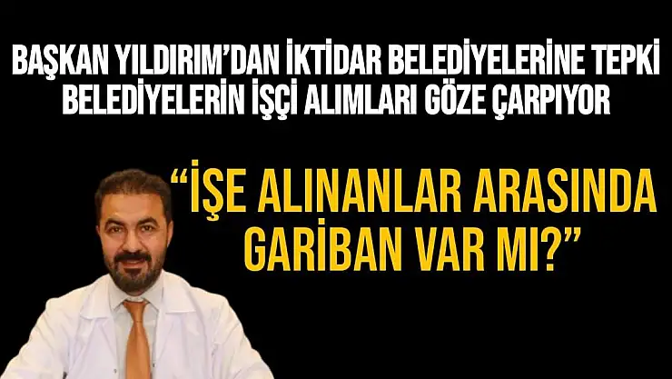 Yeniden Refah Partisi Malatya İl Başkanı Bilal Yıldırım, Malatya Büyükşehir Belediyesi ile Battalgazi ve Yeşilyurt Belediyeleri’nde son zamanlarda yapılan işe alımlar ile ilgili adeta hiçbir kanun ve kural dinlenilmeden zaten dolu olan kadrolara işçi alımı yapıldığını belirterek, “İşe alınanlar arasında gariban var mı?” dedi.